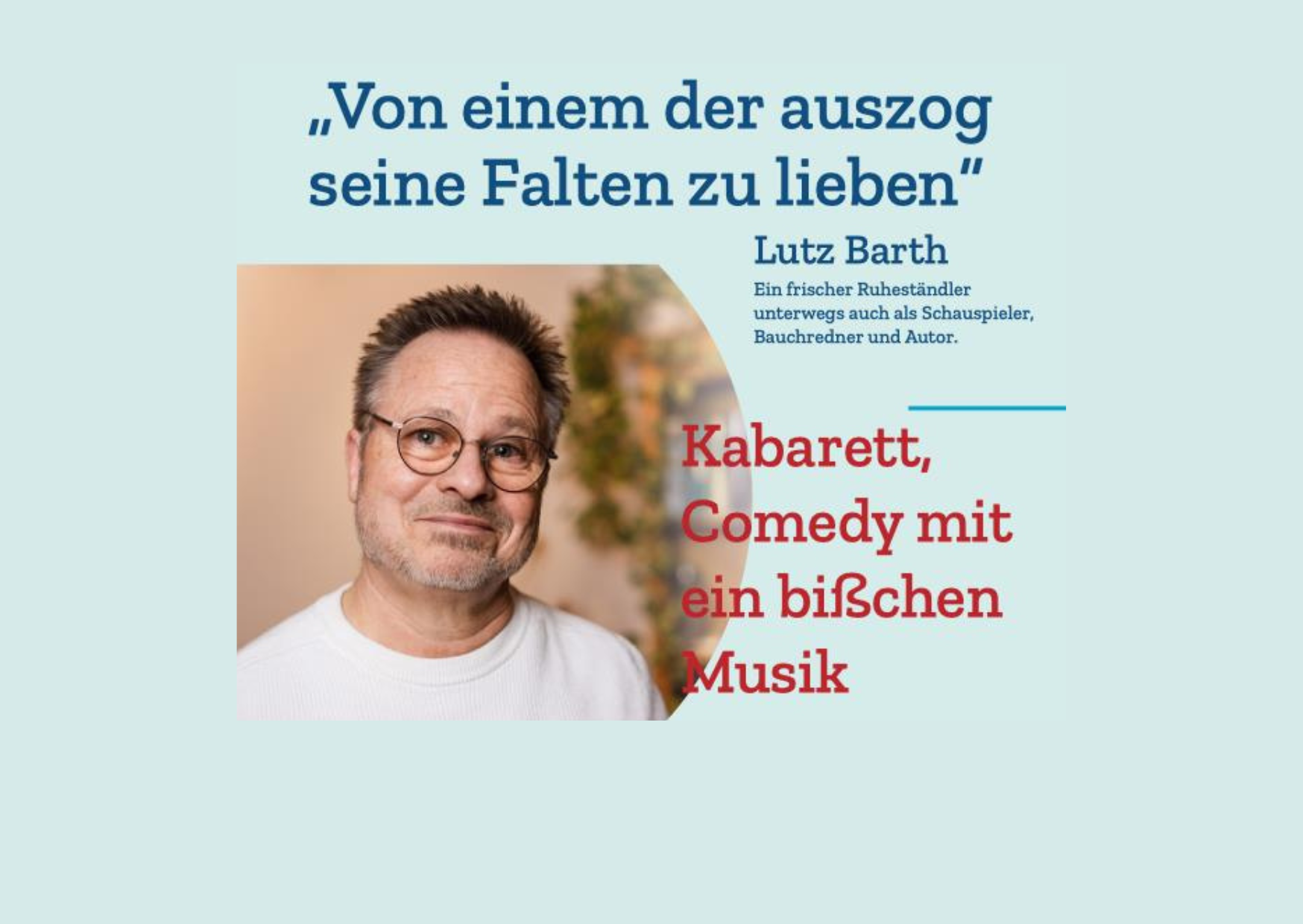 Kabarettabend mit Lutz Barth: „Von einem, der auszog, seine Falten zu lieben“ am Freitag, 14. November 2025, um 19.00 Uhr im Evangelischen Gemeindehaus Linkenheim Vom Diakon zum Schauspieler – und wieder zurück: Lutz Barth versteht es, das Leben mit einem Augenzwinkern zu betrachten. In seinem Programm „Von einem, der auszog, seine Falten zu lieben“ erzählt, spielt und sinniert er […]